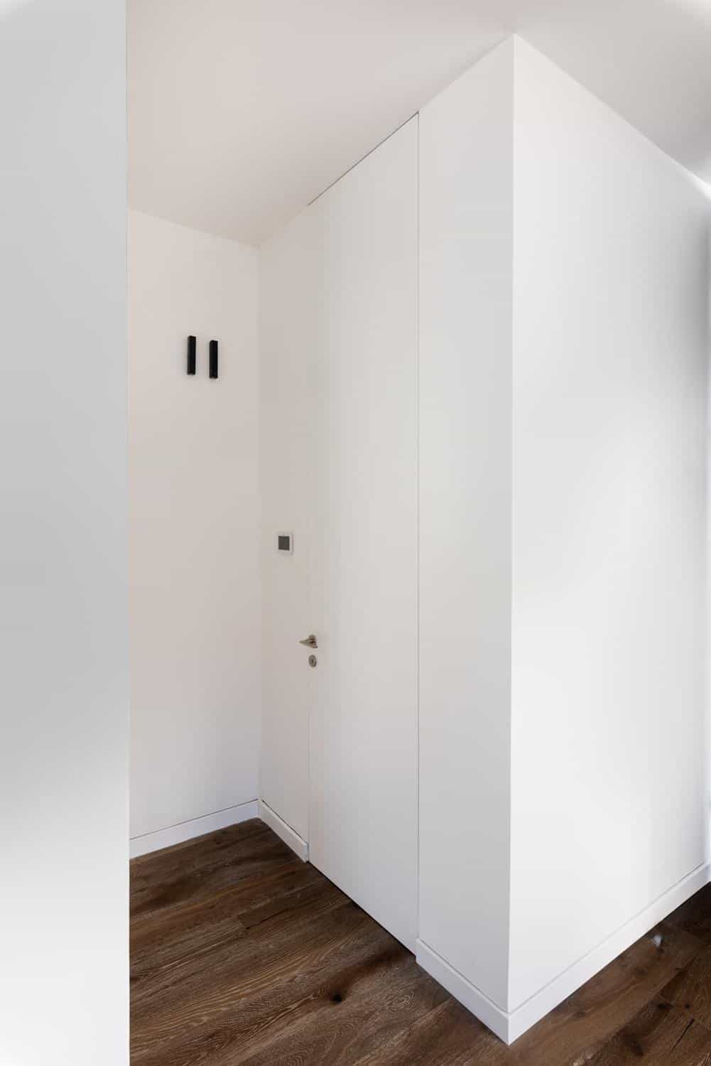 הדלתות שבחרנו הן דלתות נסתרות אפס במישור הקיר ושילוב של דלתות למינטו